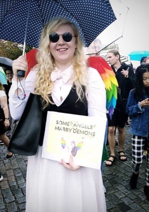 Stejně jako minulý rok, i tento byl opravdu úžasný. A teď si možná říkáte: “Proč? Vždyť celý den lilo jako z konve!” Ano, už od rána bylo příšerné počasí. Bylo tak hrozné, že mi z toho deště stekla barva z vlasů na moji asexuální vlajku, kterou jsem měla uvázanou kolem krku. K mému překvapení ale nebyla zima, a dokonce mi bylo i teplo, takže jsem si došla do Costy pro Frostino. Abych odpověděla na vaši otázku, bylo to skvělé kvůli všem těm lidem a skvělé atmosféře, která na průvodu panovala.